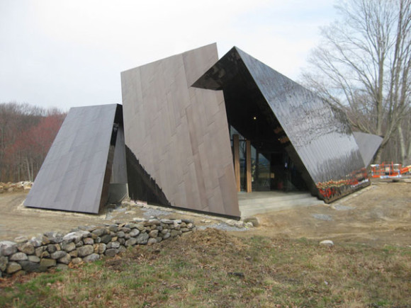 Teraz dla odmiany coś bardziej ostrego dom Connecticut. Główną inspiracją architekta była w tym przypadku spiralna wstążka, która tworzy zamkniętą wewnątrz przestrzeń.