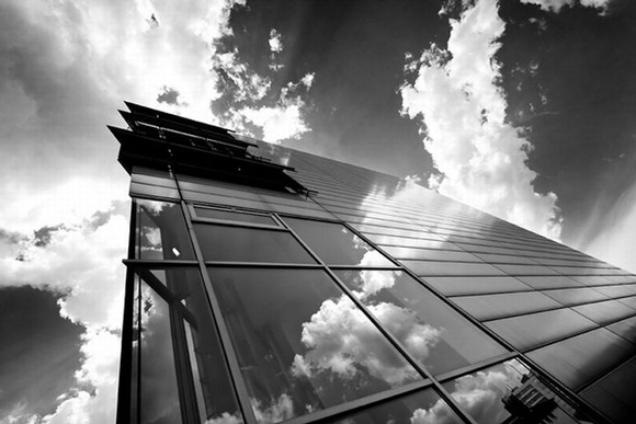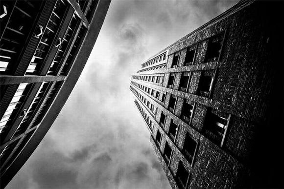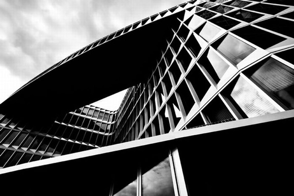 black & white, bryła, fotografia miasta, nowoczesna architektura, nowoczesny styl budowli, przestrzeń, urban