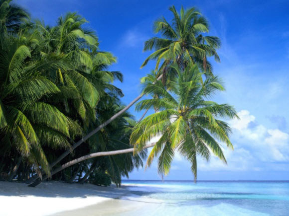 Zdjęcie opisane frazami: morze, ocean, palma, plaża, tapety.