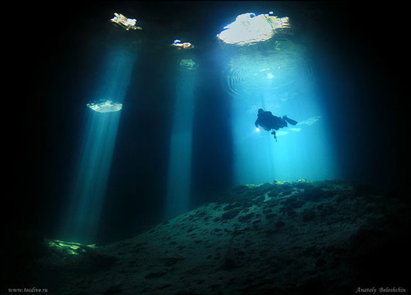 Zdjęcie opisane frazami: podwodna fotografia, Rosja, sławni fotografowie, zdjęcia jaskiń.