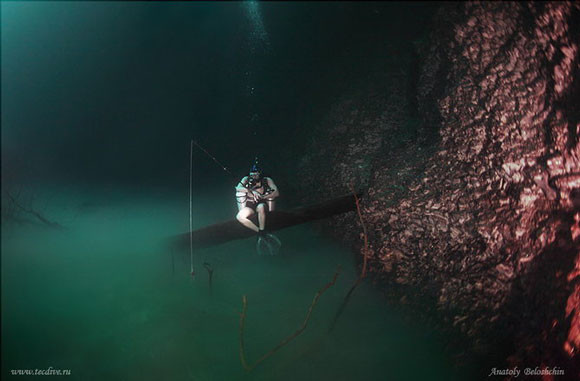 Zdjęcie opisane frazami: podwodna fotografia, Rosja, sławni fotografowie, zdjęcia jaskiń.