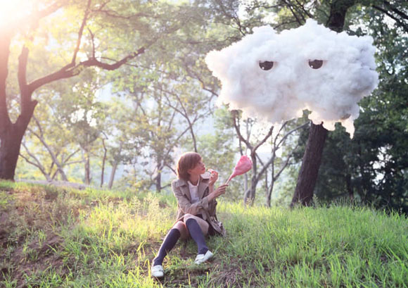 Piękna seria zdjęć fotografia w wykonaniu Michaela Casker obrazują człowieka ze 'zwierzątkiem' chmurką.