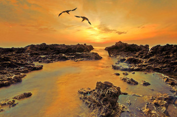 Skaliste wybrzeże Filipin – Lester A. Garcia Spieniony ocean w blasku zachodzącego słońca.... 25 lip 2012