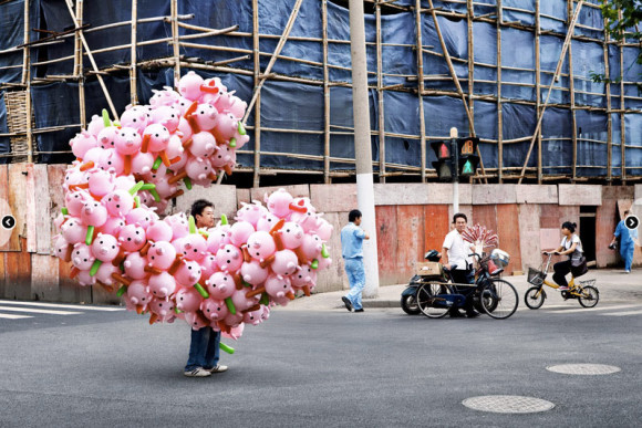 foto manipulacje, fotografia miasta, fotomontaż, full color, kwiaty, rower